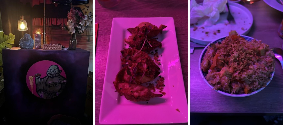 I didn’t realise before i went to this restaurant that i had been looking at an old menu that still had vegan main options listed on it. the mains were no longer vegan due to thai food being difficult to make vegan. the chef personally came out and spoke to me and came up with tofu fried rice on the spot for me to have which i was extremely grateful for as this was not a listed option and he chose to accommodate my diet anyway which is extremely kind. The fried rice & vegetable gyozas were amazing. my mum had the prawn pad thai and my boyfriend had the Khao soi, which they both said were identical to dishes they’d had in the streets of thailand. 10/10